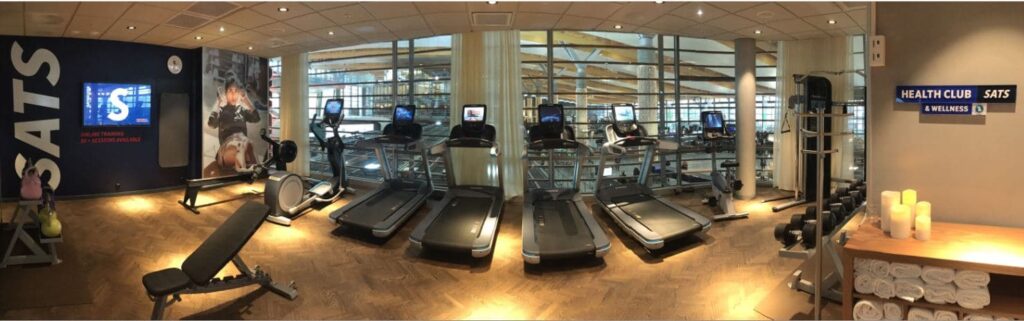 Perhaps one of the most outstanding features of the lounge is – The Gym. SAS has partnered with SATS, who have 160 training centres throughout Norway, Sweden and Finland, and created a well-equipped 70m2 gym, which also features a large touch screen from which you can choose different exercise routines. The gym has a great view over the terminal and is being used by more and more customers each day. The gym is free to use, and while passengers can show up without a pre-booking, booking a session via the SAS app is recommended, in case the gym is full.