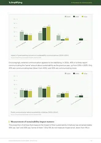 This report examines these developments across six dimensions: team structure, strategy and reporting, sustainability initiatives, sustainable aviation fuel, perception and communication, and budget and investment. Each section draws on three years of longitudinal data, supplemented by external research, to provide both a status update and a set of actionable recommendations for the year ahead.