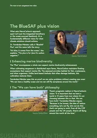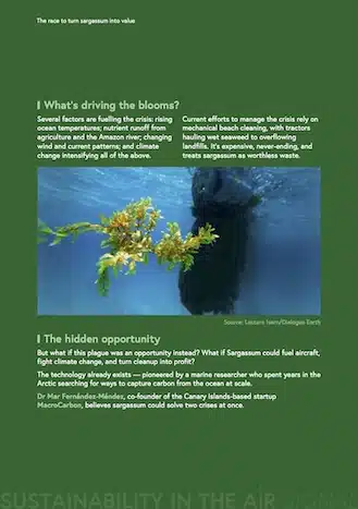 MacroCarbon turns the invasive sargassum into hydrogen-rich SAF, capturing carbon as it grows and cleaning the ocean in the process. It’s a rare “two-for-one” climate innovation — tackling both marine and atmospheric challenges.