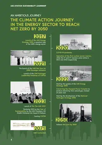 The decision to host COP28 in Dubai in November-December 2023 marked a pivotal moment for the UAE’s climate leadership. This global event, attended by world leaders, catalysed a comprehensive sustainability transformation across the nation’s key economic sectors, with aviation among its strategic priorities.