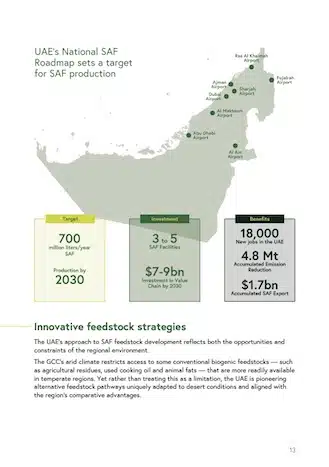 The UAE’s National SAF Roadmap sets a target of 700 million litres of annual production by 2030, positioning the nation as both a regional supplier and global exporter